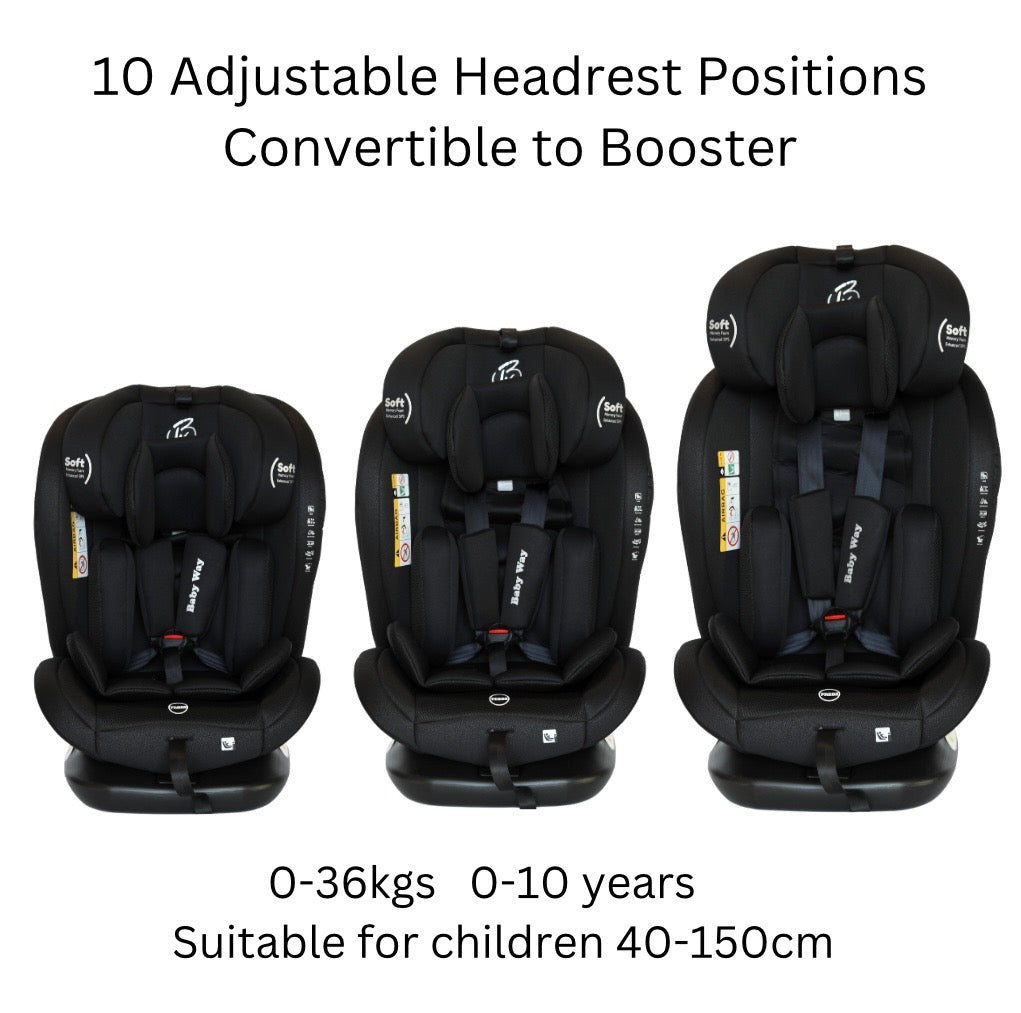 The All-Rider 360 Car Seat is the ultimate all-in-one car seat, designed to grow with your child from newborn to 10 years old (40-150cm, 0-36kg). Featuring a 360 rotating base for easy access, rear and forward-facing positions, and multiple recline angles, this seat ensures maximum safety and comfort for every ride. Certified to the latest i-Size R129 standard, it provides superior side-impact protection, adjustable memory foam headrest, and a 3-point ISOFIX + Top Tether system for a secure fit.