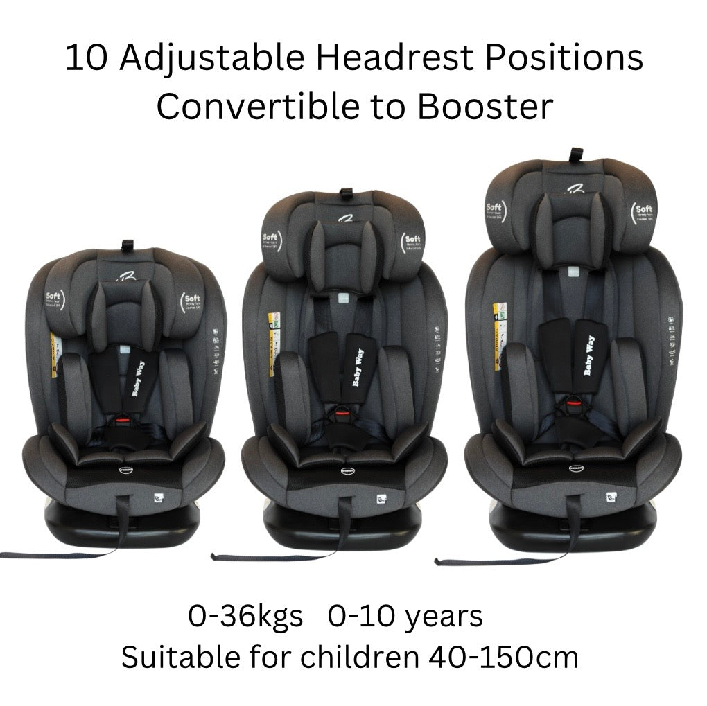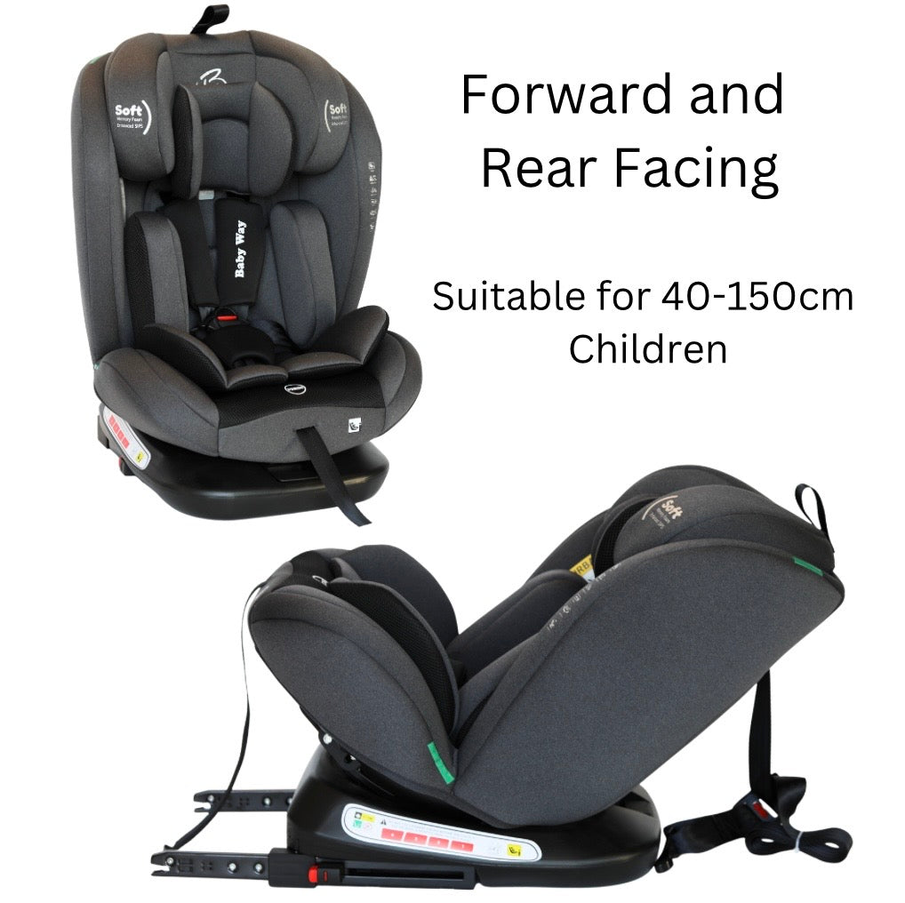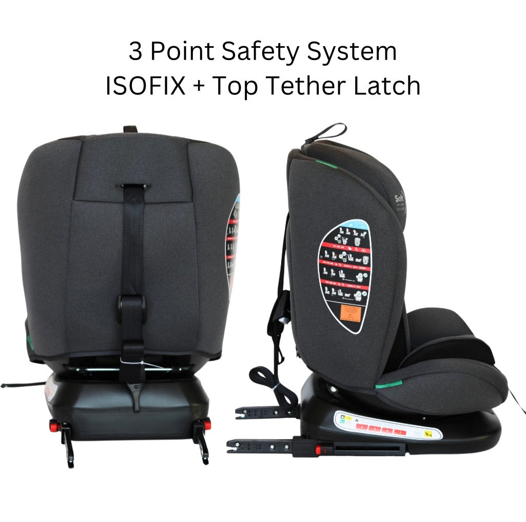 The All-Rider 360 Car Seat is the ultimate all-in-one car seat, designed to grow with your child from newborn to 10 years old (40-150cm, 0-36kg). Featuring a 360 rotating base for easy access, rear and forward-facing positions, and multiple recline angles, this seat ensures maximum safety and comfort for every ride. Certified to the latest i-Size R129 standard, it provides superior side-impact protection, adjustable memory foam headrest, and a 3-point ISOFIX + Top Tether system for a secure fit.
