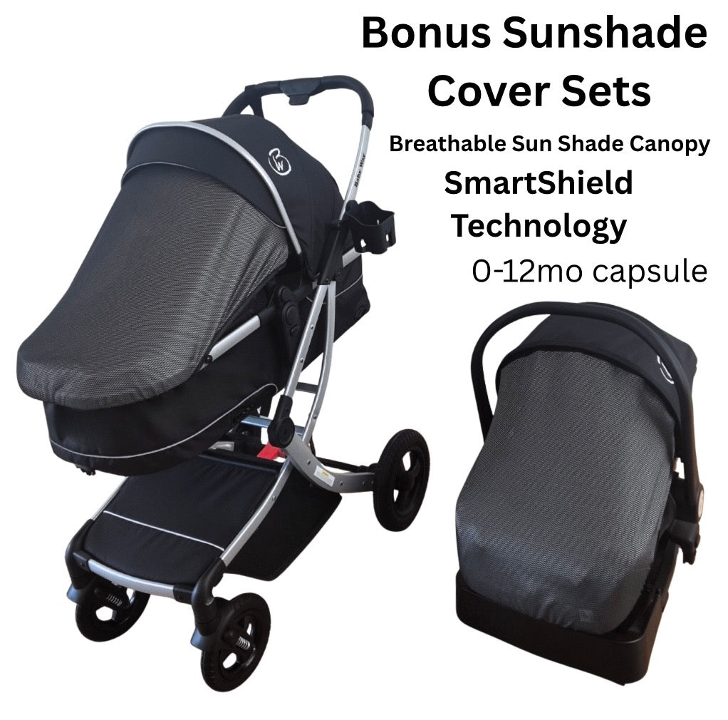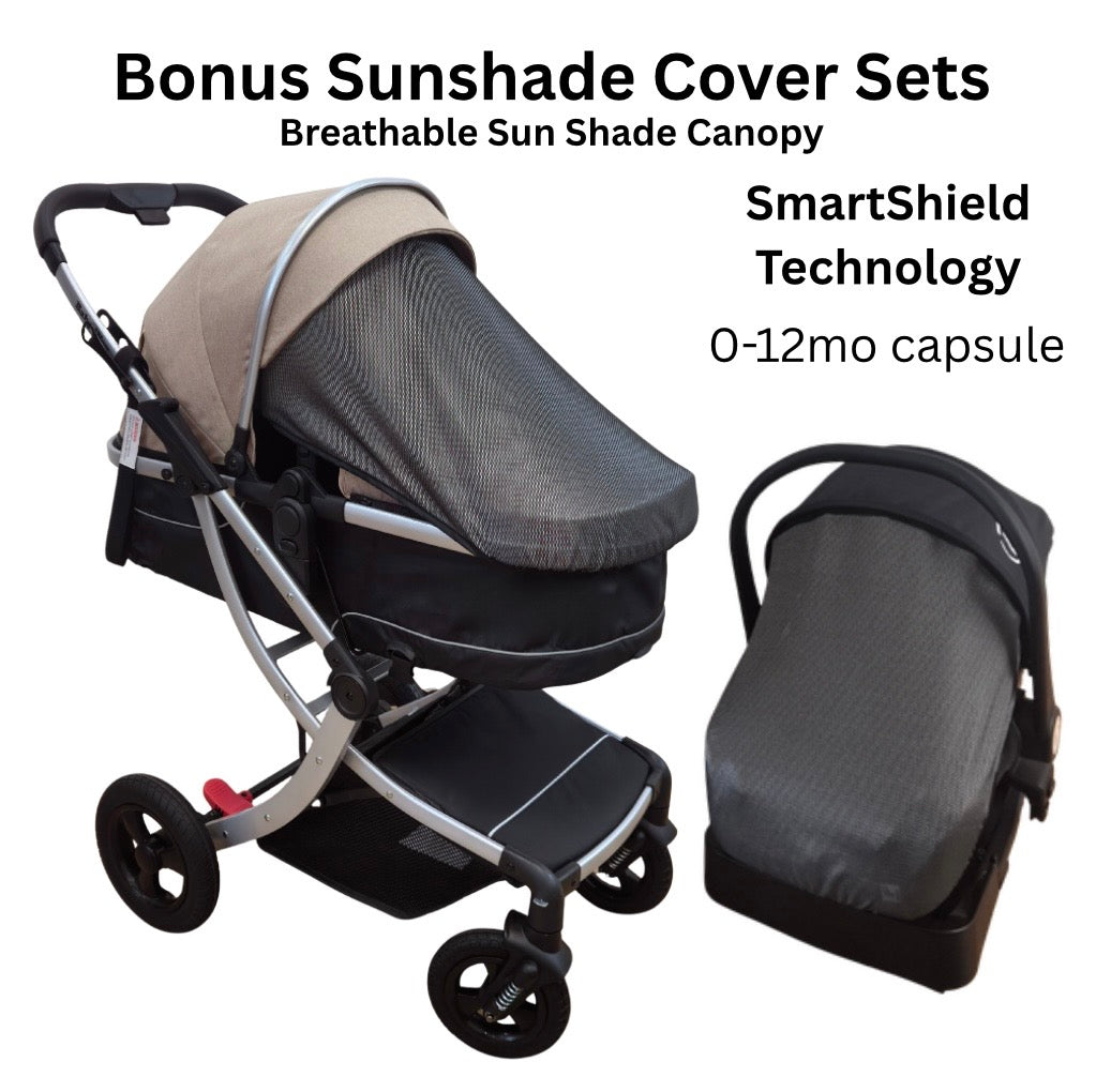 • Bonus sunshade cover sets with SmartShield breathable canopy for Stroller and Capsule