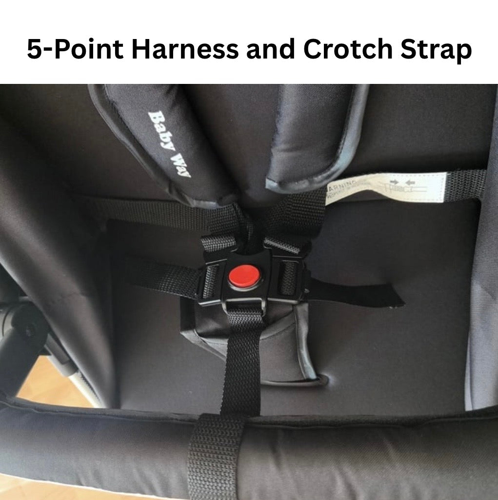 • 5-point harness + crotch strap
