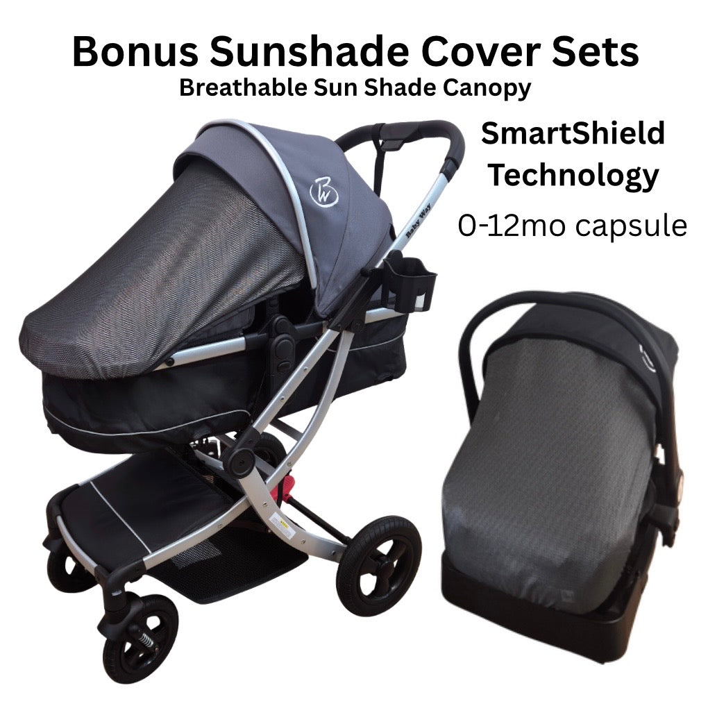 • Bonus sunshade cover sets with SmartShield breathable canopy for Stroller and Capsule