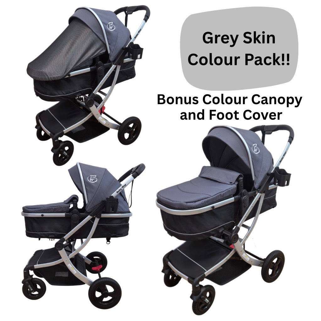 • Extra Grey Colour Pack: switch between Black to Grey canopy and foot cover