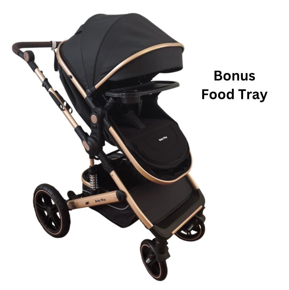 The Baby Way Supra Travel System is designed to grow with your child from birth to 3 years. With a luxe black and gold frame, plush folding bassinet, and safety-certified capsule and optional base, it’s the perfect all-in-one pram combo. This is our most innovative and ultimate combo packed with features, functionality, and colours to suit your lifestyle.